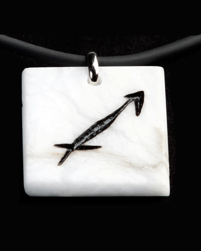 Collares de soporte mineral con grabados de la simbología del horóscopo occidental antiguo. El alabastro es una piedra natural cristalina de colores blanquecinos translúcidos y veteados distintos según su procedencia.