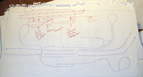 No es la primera maqueta que construyo, pero siempre tiene el mismo comienzo, el concepto, o lo que es lo mismo, la idea general , suele empezar con un simple boceto en un papel, sin ninguna escala ni proporción, solo unos simples trazos a lápiz de lo que será el circuito principal, anexos, carreteras, estaciones etc. Es importante estudiar bien las posibles circulaciones y maniobras que en definitiva será lo que nos dará juego. Hemos de tener una idea general del conjunto que luego iremos perfilando, situación de los edificios, la iluminación, la decoración, las carreteras serán funcionales o no (Faller Car System).