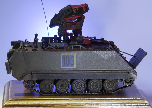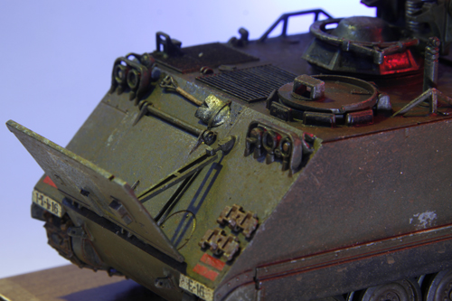 Esta muy especializada versión del versátil M-113 muestra de nuevo el extremo valor de este vehículo, que fue diseñado por los ejércitos U.S.A. hace casi más de treinta años.
